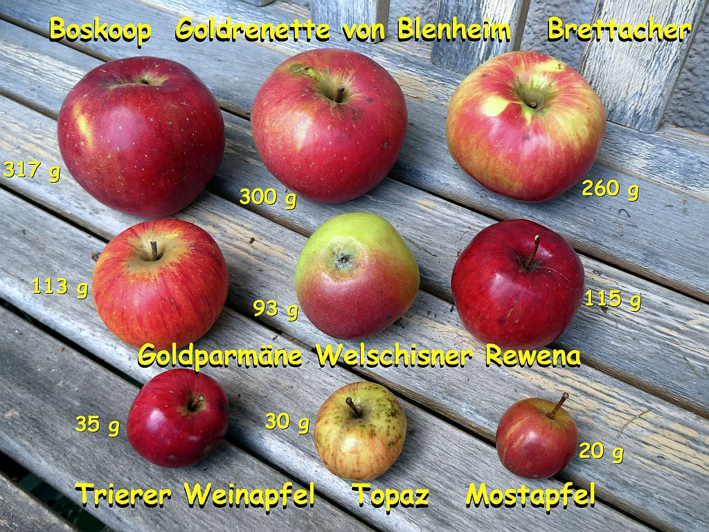Im Jahr 2025 gab es nicht nur sehr viele Äpfel, die Früchte waren groß und "schön wie im Bilderbuch". Ich habe deshalb die Apfelsorten von fast allen Bäumen, die ich beerntet habe, fotografiert und hier in einer Galerie (in alphabetischer Reihenfolge) zusammengestellt.